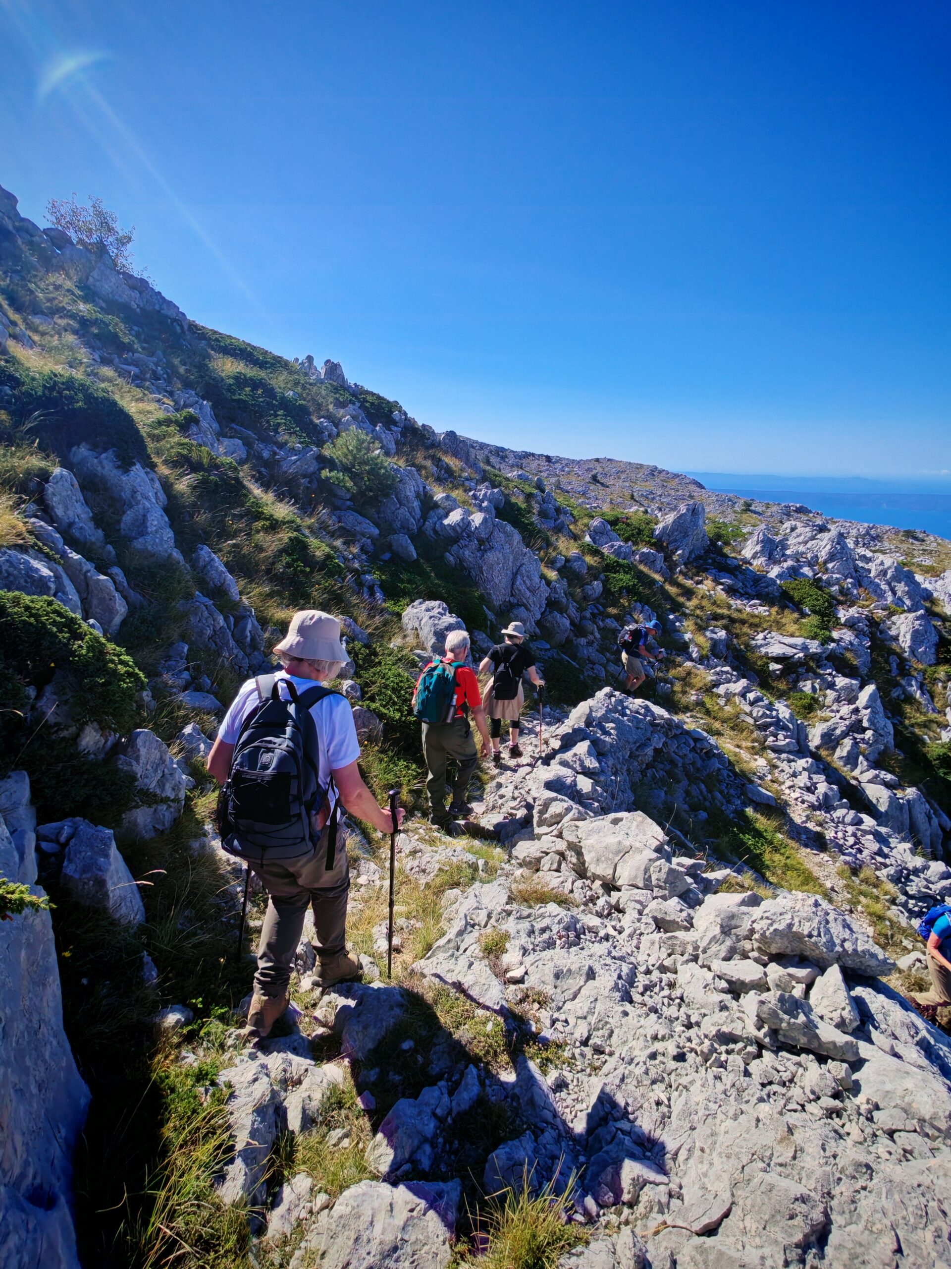 Biokovo Mountain is a dramatic limestone mountain range rising steeply above the Makarska Riviera on the Adriatic coast of Croatia. It is part of the protected Biokovo Nature Park, one of the most impressive natural landscapes in the country, known for its raw beauty, extreme relief, and breathtaking sea views. The highest peak of Biokovo is Sv. Jure (1,762 m), which is also the highest peak on the entire Adriatic coast. From its slopes to the sea, Biokovo offers a unique contrast between rugged alpine terrain and the turquoise Adriatic Sea below. One of the most popular hiking destinations is Vošac (1,421 m), a spectacular viewpoint above Makarska offering panoramic views of the islands of Brač, Hvar, Korčula, and the Pelješac peninsula. It is a favorite hiking goal for both locals and visitors. Biokovo is also home to the famous Skywalk Biokovo, a glass platform built on a cliff edge that provides a thrilling experience of walking above the sea and clouds. This attraction has become one of the most iconic viewpoints in Croatia. The mountain is rich in biodiversity, with numerous endemic plant species, wildlife, and unique karst formations. Its landscapes include rocky peaks, deep sinkholes, ancient beech and pine forests, and historic mountain routes such as the Napoleon Road, which connects different parts of the mountain. Above towns like Makarska and Brela, Biokovo hides many untouched areas, including forest trails, dramatic cliffs, and hidden viewpoints that are best explored with a local guide. Today, Biokovo is one of Croatia’s top outdoor destinations for hiking, trekking, climbing, and nature experiences, attracting adventurers from all over the world. Exploring Biokovo with a professional local guide ensures not only safety, but also deeper insight into the mountain’s history, geology, flora, and hidden stories